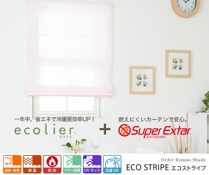 TEIJINの「ecolier(エコリエ)」を使用した夏は涼しく冬は暖かいローマンシェードです。
