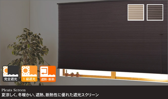 生地の内側にアルミフィルムを貼り合せた、断熱・保温効果に優れたハニカム構造の完全遮光のスクリーンです。