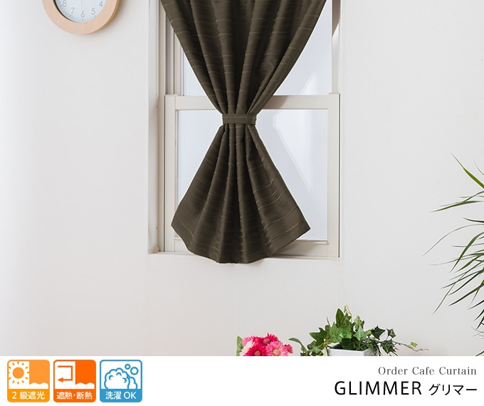 シックなカラーに光沢のあるボーダーが映える2級遮光のカフェカーテンです。