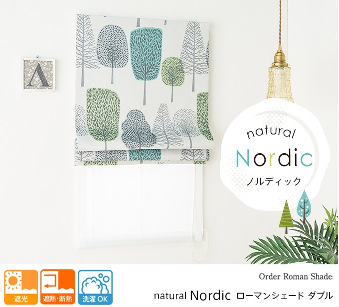 ナチュラル ノルディック フォレスト オーダーローマンシェード ダブル/遮光 遮熱・断熱 洗濯OK 日本製