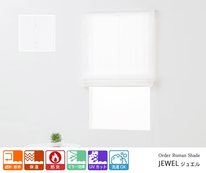 【幕体のみ】合わせやすい無地柄の防炎UVカットミラーレースローマンシェード「カラット」ホワイト【買い替え用】