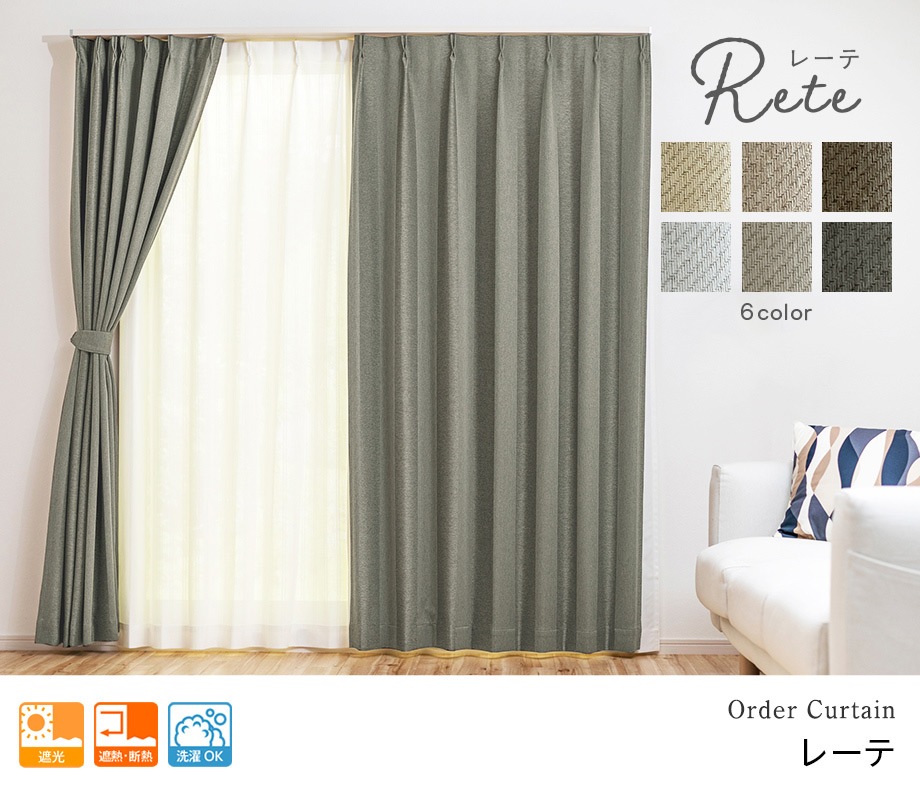薄くて柔らかい感触を生かした、素材感のある風合いの完全遮光カーテンです。アクリル樹脂の完全遮光生地と比べ、約24%の軽量化を実現しました。ナチュラルテイストなお部屋にも馴染みます。