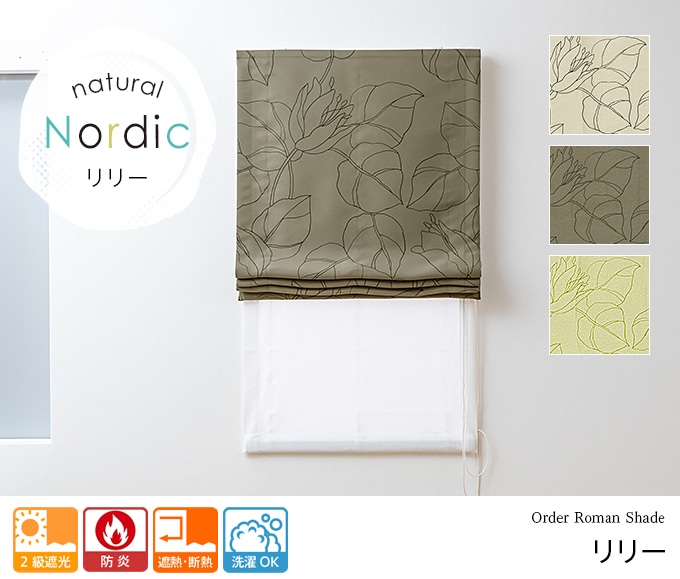 ナチュラル ノルディック 防炎 リリー(ブラウン) オーダーダブルシェード/2級遮光 遮熱・断熱 防炎 洗濯OK 日本製についてつぶやく