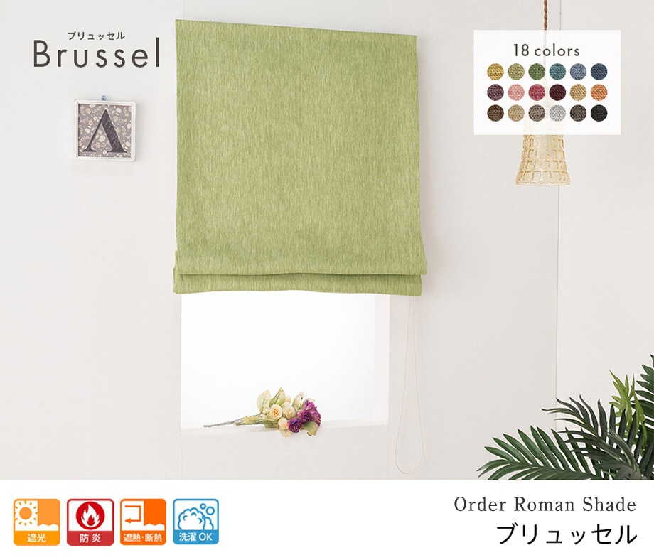 ナチュラルな質感と色合いを持つ杢調生地のオーダー防炎遮光ローマンシェード「ブリュッセル」ライトグリーン(2級遮光)についてつぶやく
