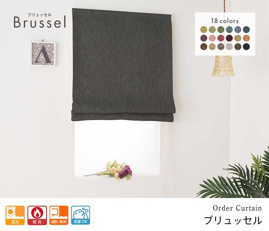 ナチュラル ノルディック 防炎 アース(ブラウン) オーダーローマンシェード/1級遮光 遮熱・断熱 防炎 洗濯OK 日本製