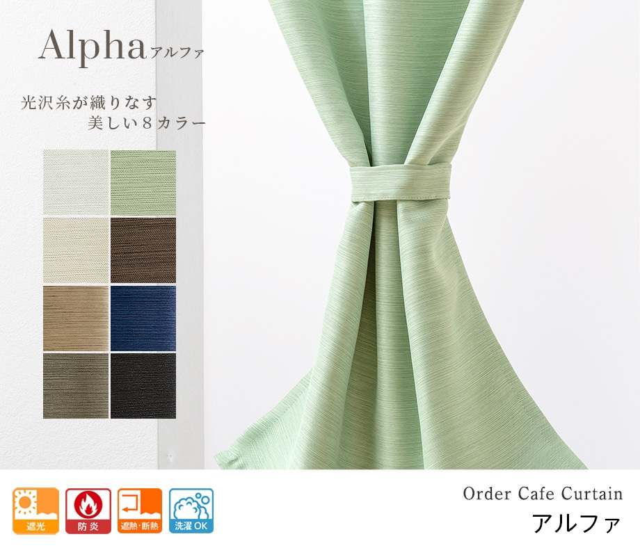 主張しすぎない光沢と繊細な織り感が美しい遮光カフェカーテン「アルファ」非防炎タイプ グリーン(1級遮光)
