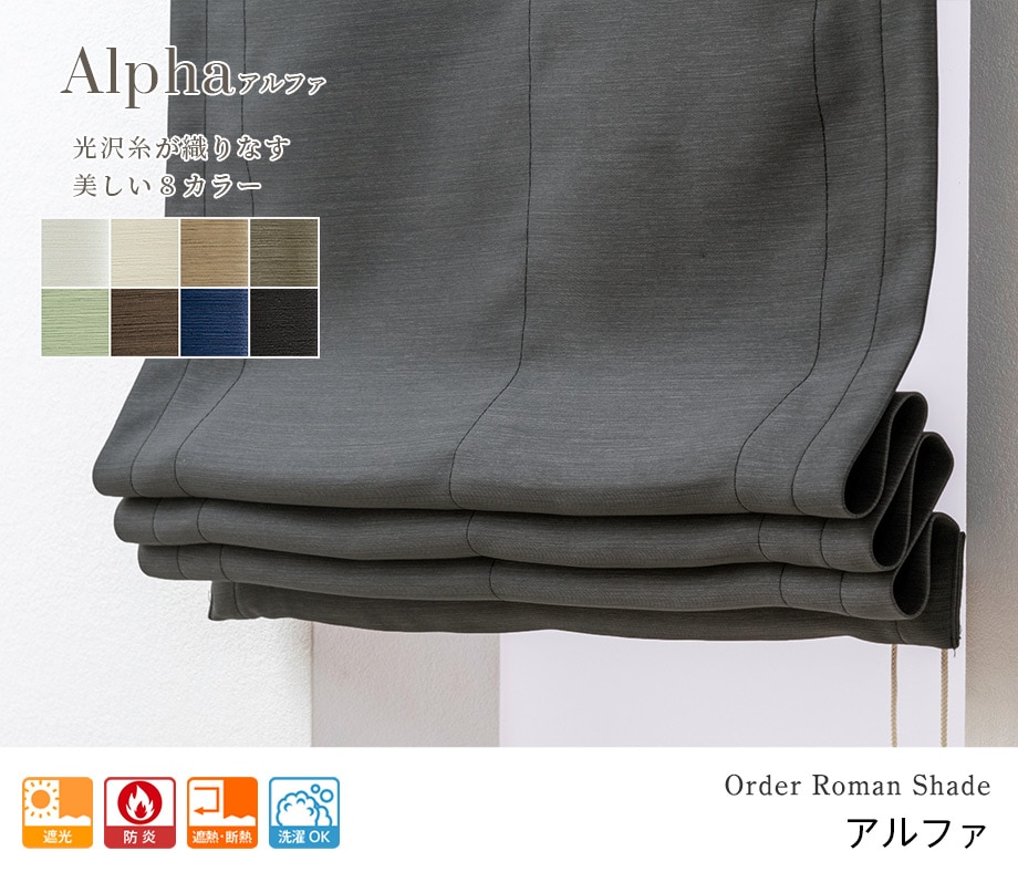 主張しすぎない光沢と繊細な織り感が美しい防炎遮光ローマンシェード「アルファ」防炎タイプ アイボリー(2級遮光)