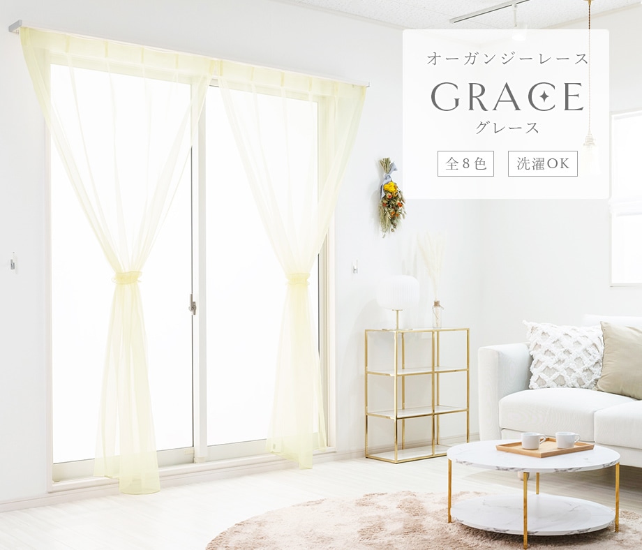 オーダーカーテン通販【aiika】 > カーテン > オーダーカーテン > レースカーテン > 透き通るような透明感が魅力のオーガンジーレースカーテン「グレース」イエロー