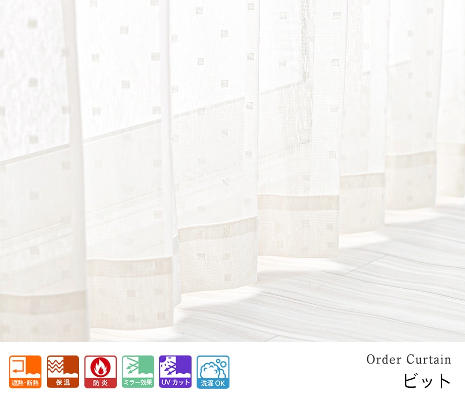 四角いドット柄の防炎UVカットミラーレースカーテン「ビット」ナチュラルについてつぶやく