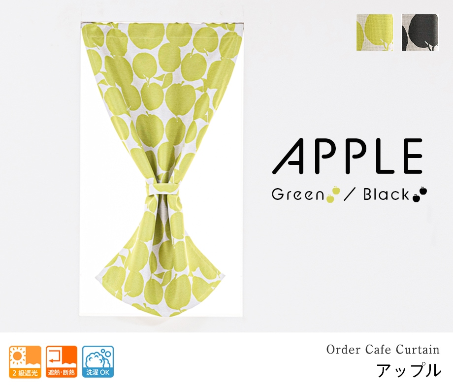 織り感のあるナチュラルな生地に、一面に散りばめられた手書き風のリンゴがおしゃれ。 シックな色合いとモダンなシルエットで、大人な雰囲気のインテリアにも馴染みます。 朝日や眩しい西日の光をほどよく遮る2級遮光で、見た目も機能も充実したカーテンです。