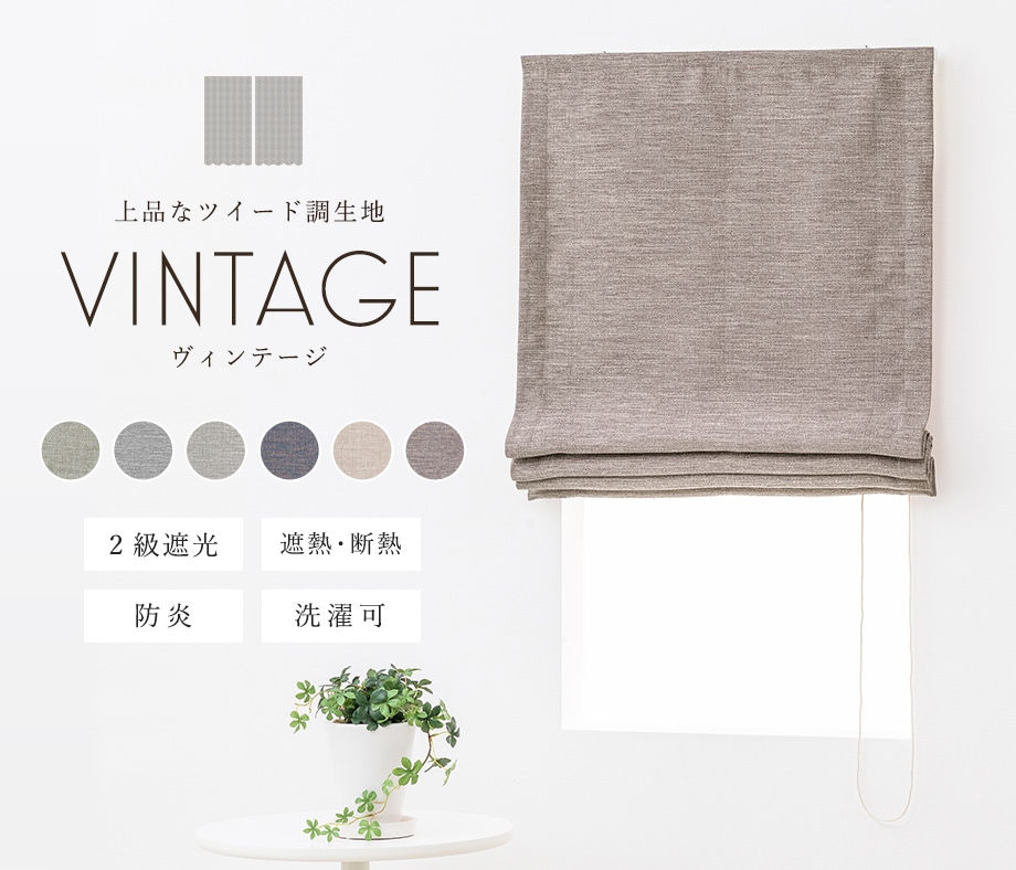 高級感のあるツイード調生地の洗える防炎ローマンシェード「ヴィンテージ」パープルについてつぶやく
