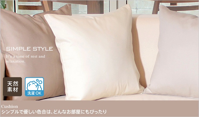 綿100%のとってもさらっとしたさわり心地が特徴のクッションです。通気性もよく、しわになりにくいのも特徴の一つです。