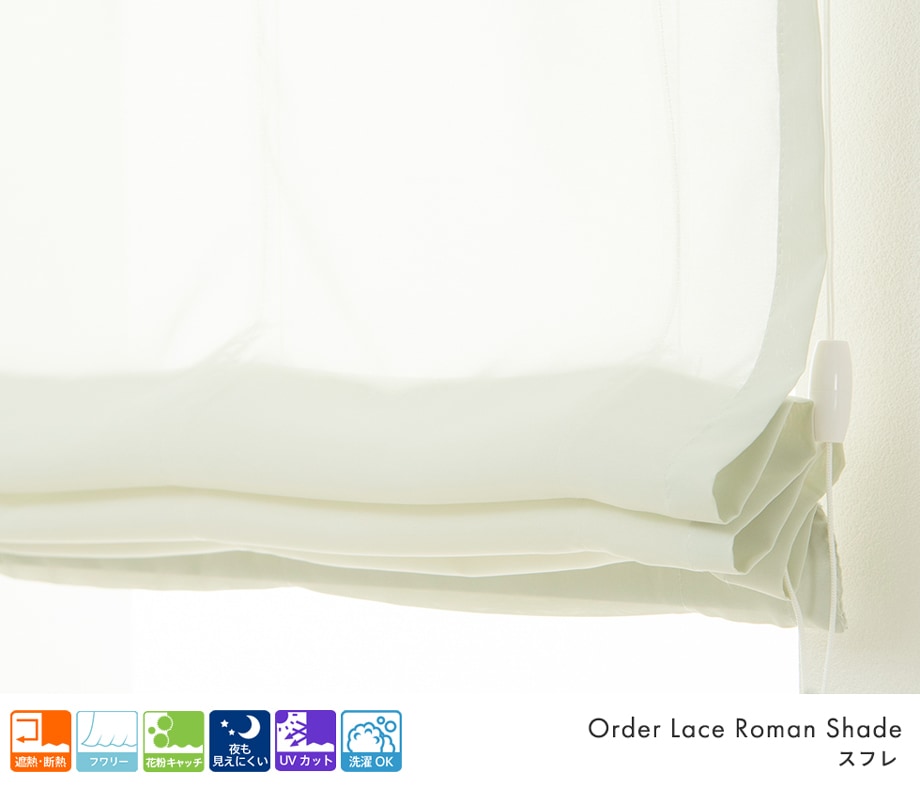 綿(コットン)ミラーレース ローマンシェード(アイボリー)