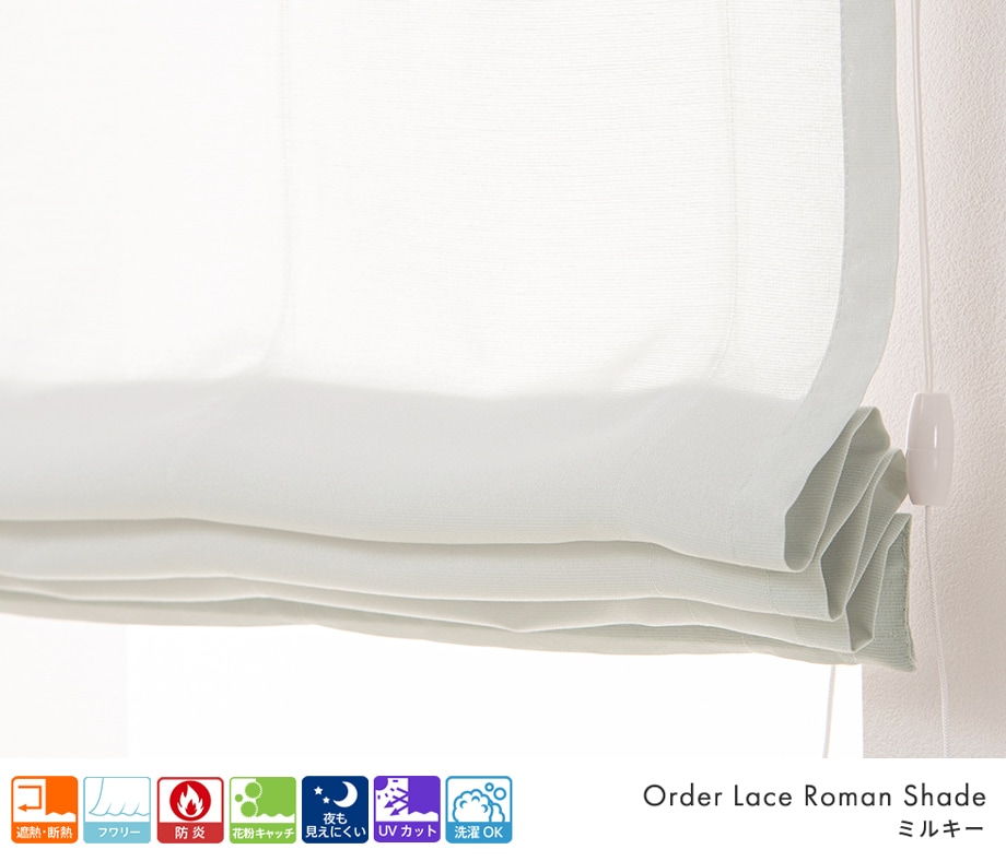 今お使いのメカをそのままに、幕体(カーテン生地)だけを取り替えできます。防炎機能やUVカット機能を備えた、シンプルで合わせやすいレースローマンシェードです。清潔感のある窓辺を演出できるレースカフェカーテンは新しい毎日にぴったりの1枚で、あなたのお気に入りの空間にそっと寄り添います。