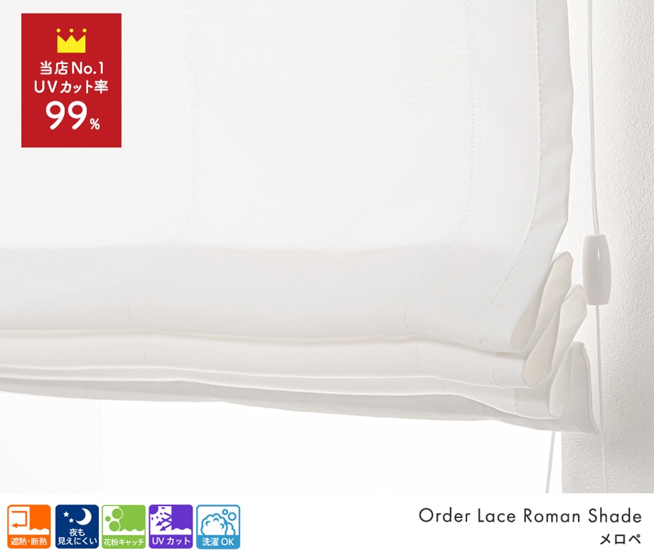 今お使いのメカをそのままに、幕体(カーテン生地)だけを取り替えできます。高機能レースローマンシェードです。UVカット率は驚きの99%!紫外線による家具や床の劣化、お肌の日焼けを最大限に防ぎます。