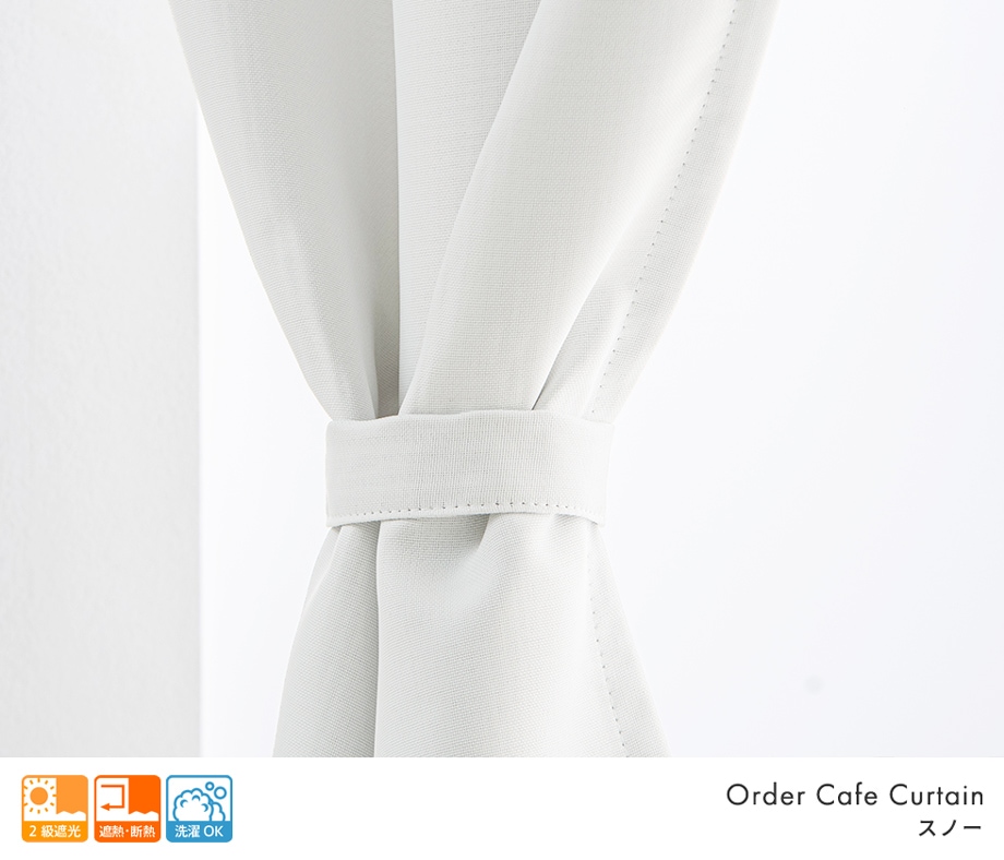 くすみのない明るいホワイトの2級遮光カフェカーテンです。「人の顔や表情が識別できない程度」の遮光レベルで、西日などの強い光をほどよく遮ります。遮光はしたいけれど、最低限の光は感じたい方におすすめです。 同程度の明るさの1級遮光カフェカーテン「マシュマロ」は織り感が全くないなめらかな質感ですが、こちらは多少の織り感が見られるカジュアルな雰囲気のカフェカーテンです。 心に思い浮かべた理想のお部屋を実現するために、写真だけではお伝えしきれないその白さをぜひ無料サンプル請求で直接お確かめください。