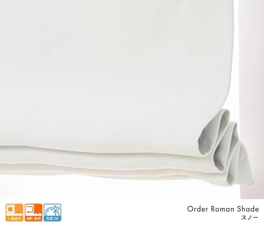 くすみのない明るいホワイトの2級遮光ローマンシェードです。「人の顔や表情が識別できない程度」の遮光レベルで、西日などの強い光をほどよく遮ります。遮光はしたいけれど、最低限の光は感じたい方におすすめです。 同程度の明るさの1級遮光ローマンシェード「マシュマロ」は織り感が全くないなめらかな質感ですが、こちらは多少の織り感が見られるカジュアルな雰囲気のローマンシェードです。 心に思い浮かべた理想のお部屋を実現するために、写真だけではお伝えしきれないその白さをぜひ無料サンプル請求で直接お確かめください。