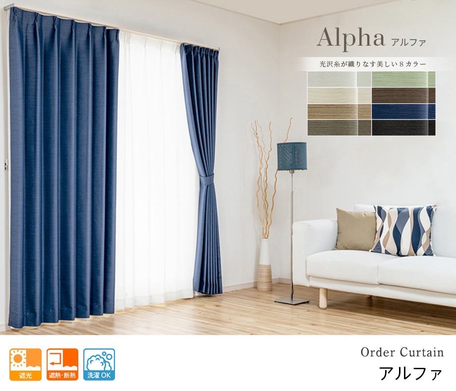 オーダーカーテン通販【aiika】 > カーテン > オーダーカーテン > 遮光カーテン > 主張しすぎない光沢と繊細な織り感が美しい遮光カーテン「アルファ」非防炎タイプ ネイビー(1級遮光)