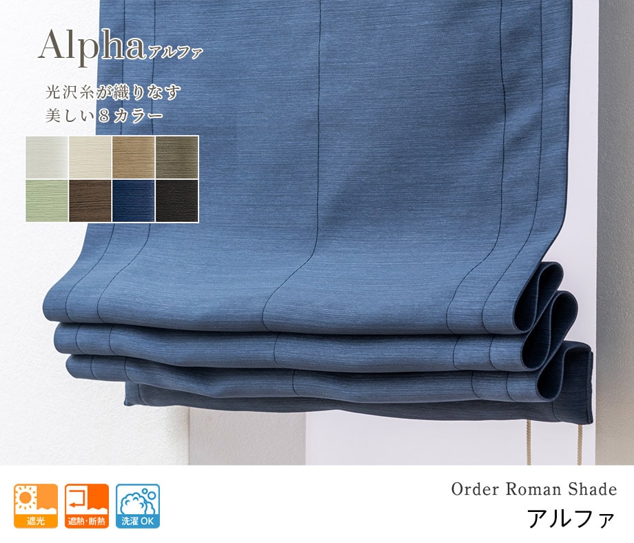主張しすぎない光沢と繊細な織り感が美しい防炎遮光ローマンシェード「アルファ」防炎タイプ ネイビー(1級遮光)
