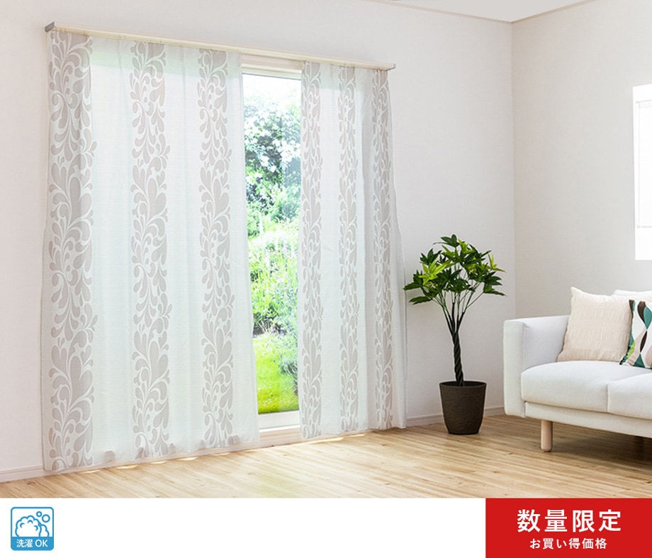 ナチュラルな素材感のシアーに、オーナメント文様をおおらかにプリントした防炎遮像レースカーテンです。昼も夜も透けにくい生地を使用しているので、お部屋の大切なプライバシーを守ります。