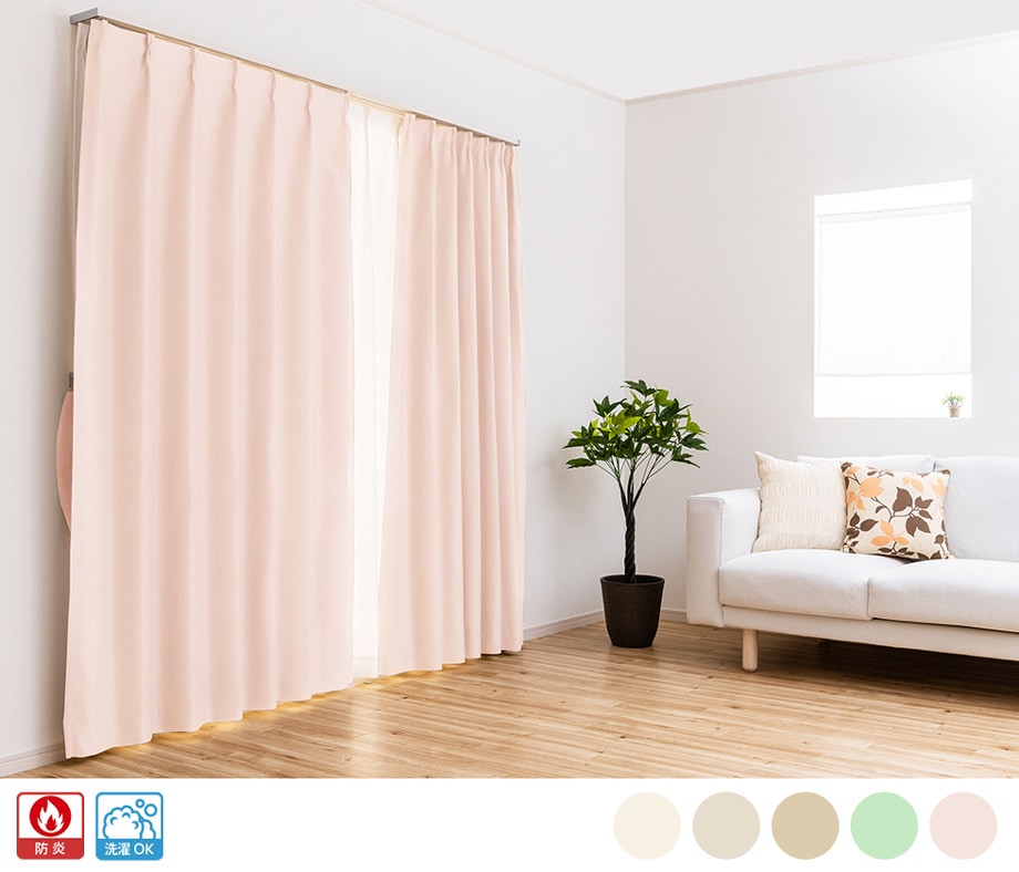 遮光率99.99% 1級遮光防炎カーテン 無地(ピンク)