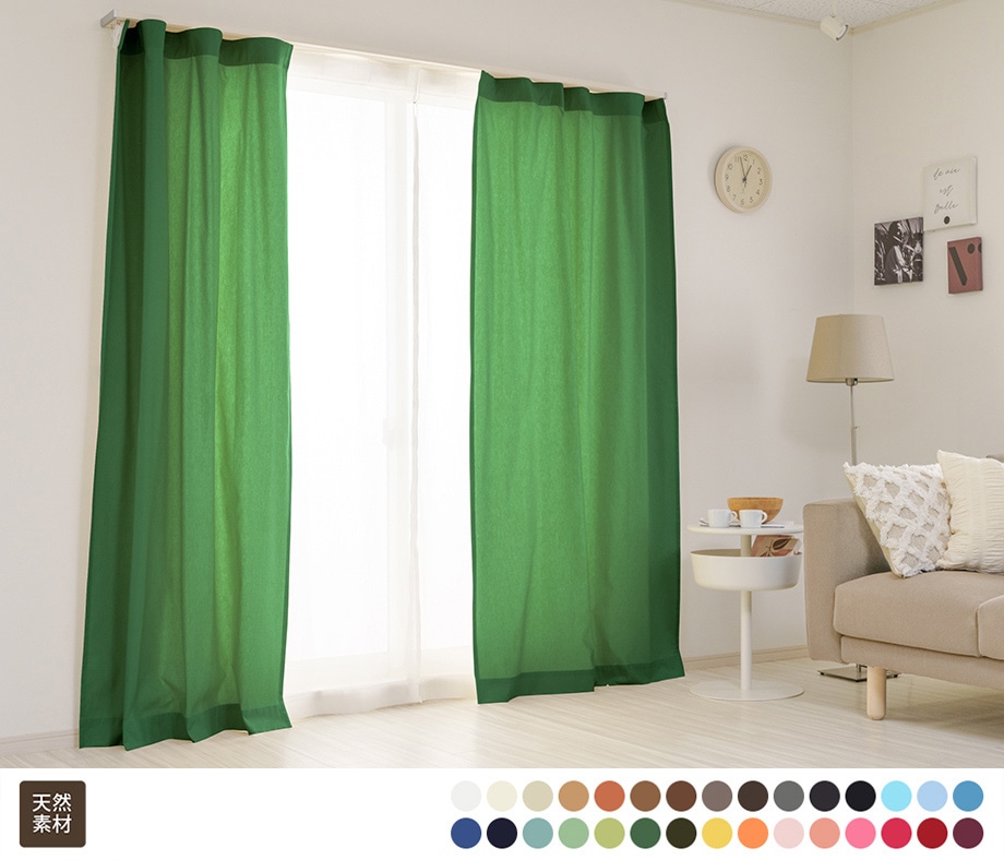 オーダーカーテン通販【aiika】 > カーテン > オーダーカーテン > 厚地カーテン > 綿(コットン)100% 無地 さらっとした触り心地のオックス織り天然素材カーテン グラスグリーン