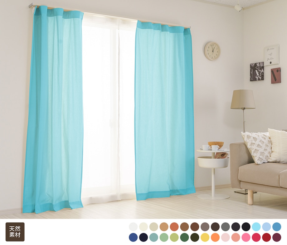 綿(コットン)100% 無地 さらっとした触り心地のオックス織り天然素材カーテン レイクブルー