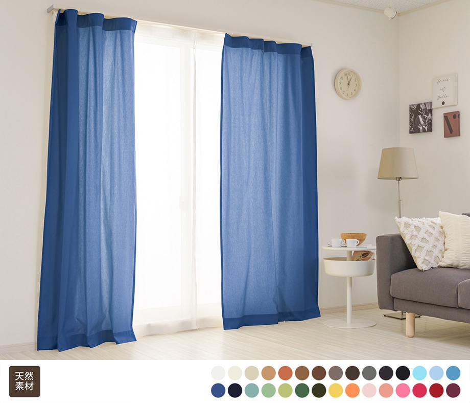 綿(コットン)100% 無地 さらっとした触り心地のオックス織り天然素材カーテン レイクブルー