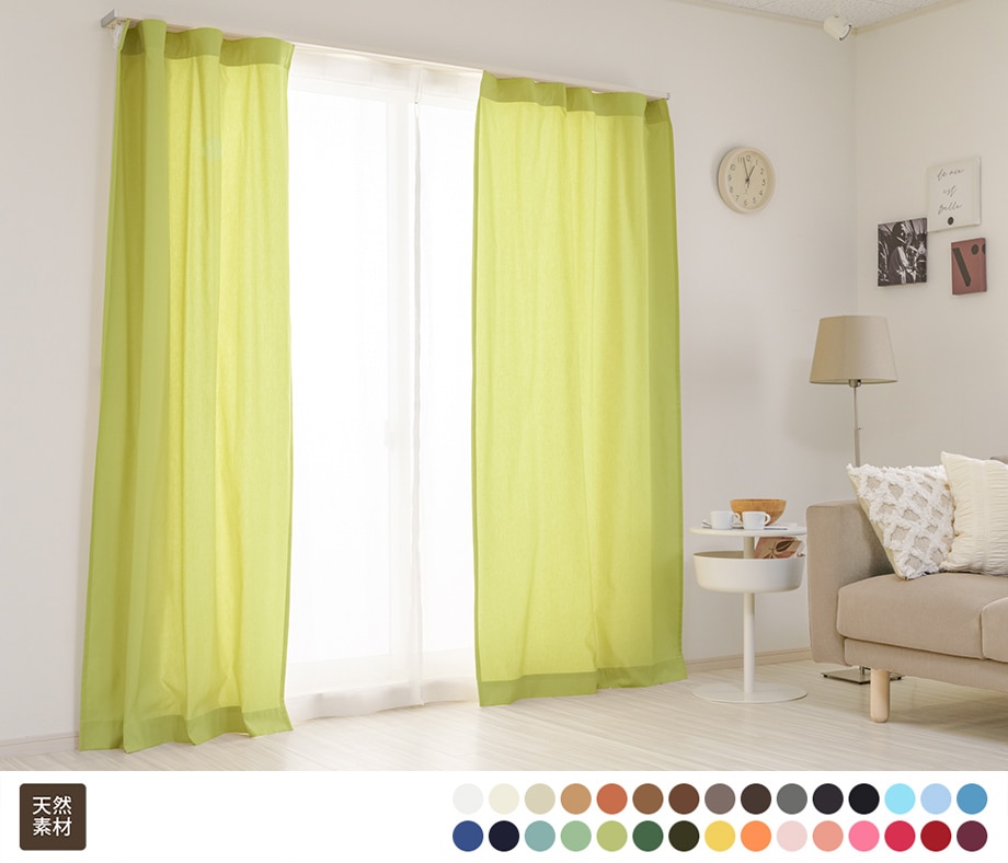 綿(コットン)100% 無地 さらっとした触り心地のオックス織り天然素材カーテン ナチュラル