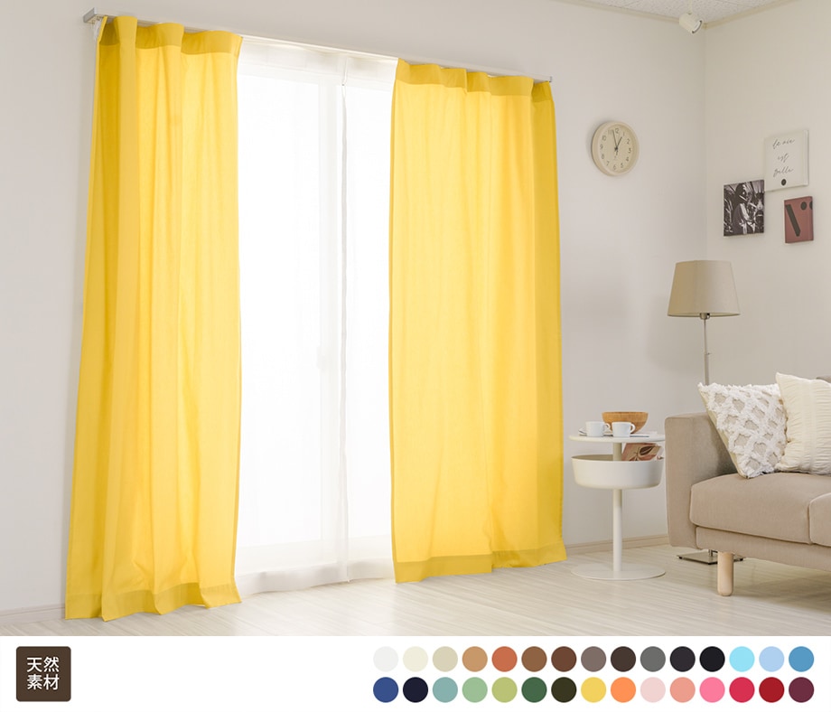 オーダーカーテン通販【aiika】 > カーテン > オーダーカーテン > 厚地カーテン > 綿(コットン)100% 無地 さらっとした触り心地のオックス織り天然素材カーテン イエロー