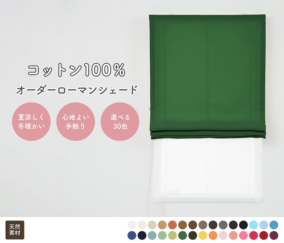 綿(コットン)100%を使用した、さらっとした触り心地が特徴のオックス織り天然素材ダブルシェードです。シンプルな無地ながらも雰囲気ある上品な生地で、綿のやわらかな質感も特徴です。