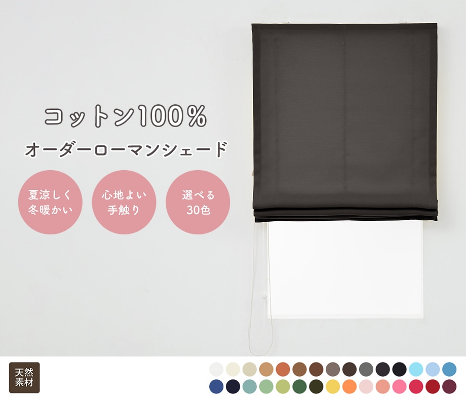 【幕体のみ】綿(コットン)100% 無地 さらっとした触り心地のオックス織り天然素材ローマンシェード ブラック【買い替え用】