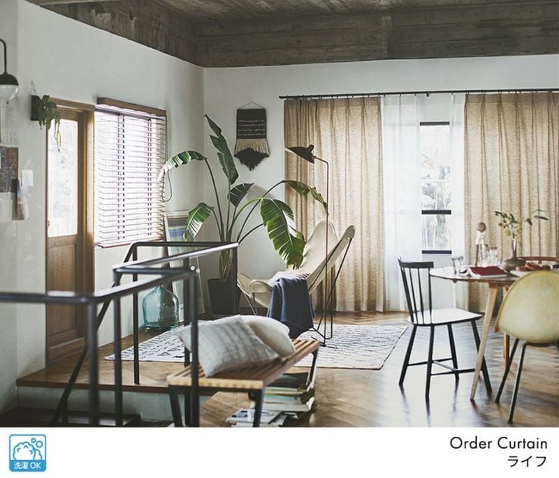 麻混でざっくりとしつつ柔らかさも兼ね備えた自然な素材感のカーテンです。ポリエステル生地の中に、ところどころ麻の繊維を混ぜ込んだ素材感が魅力。