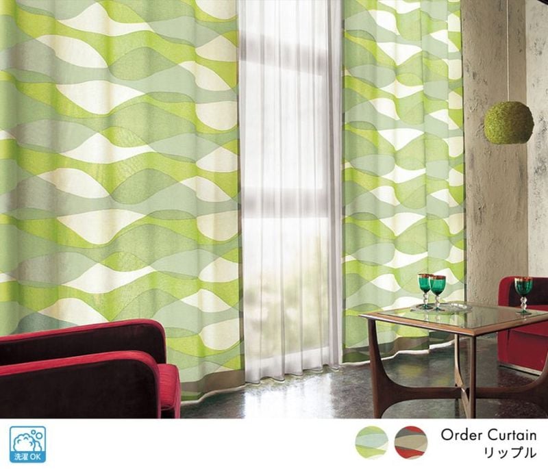 鮮やかなカラーリングのウェーブ柄プリントドレープカーテン「リップル」グリーンについてつぶやく