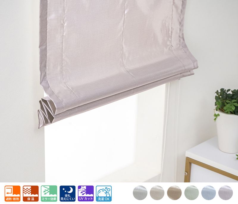 エアコン効率アップ! 無地の防炎 省エネミラーレース ローマンシェード