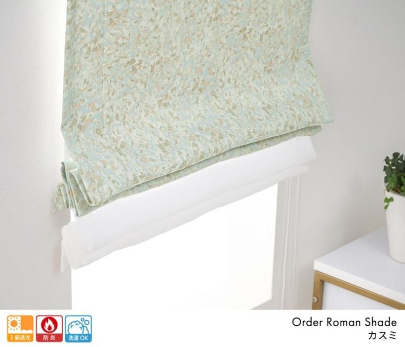 ナチュラル ノルディック フォレスト オーダーローマンシェード ダブル/遮光 遮熱・断熱 洗濯OK 日本製