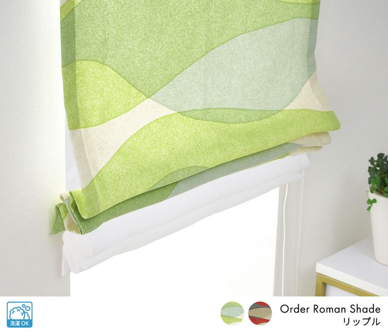 鮮やかなカラーリングと波のような躍動感が魅力のダブルシェード。グリーンまたはレッドの美しいウェーブ柄が特徴で、北欧調のモダン家具との相性も抜群です。