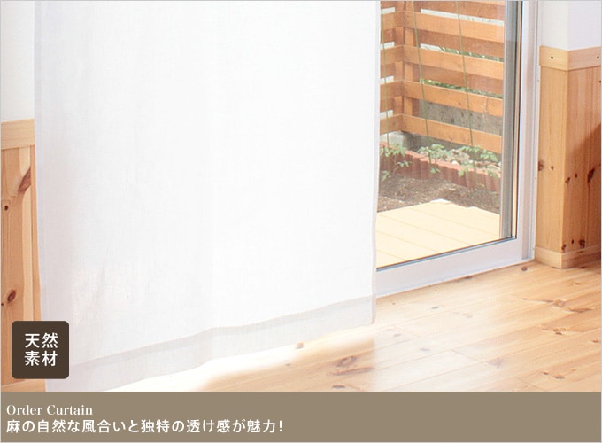 麻100%を使用した、ナチュラルで、さらっとした触り心地。生地の透け感は、言葉では言い表せないくらいキレイです。特に白は清潔感と部屋がリッチな雰囲気になります。